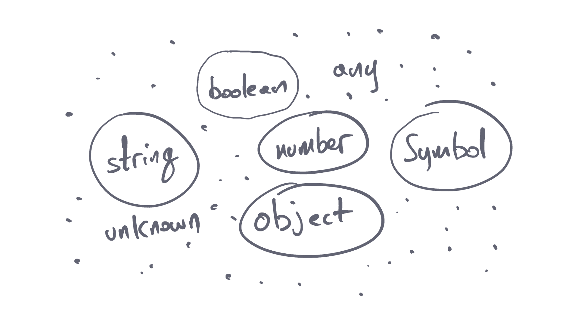 any: the parent of all TypeScript types. You instruct TypeScript that you don’t know what a type can be, but it’s ok. You give your permission to TypeScript. You’re saying “I know what I’m doing here”. Most of the cases you simply don’t.unknown: This is again the parent of all types, with a small catch. You instruct TypeScript that you don’t know what the type can be, but you want to protect yourself from unnecessary mistakes.never: This is the opposite of the previous ones. It basically means no type must be assigned to that thing, no matter what. Think of it as the valuenull. It is useless as a value, but it plays a big role in the logic of your application.